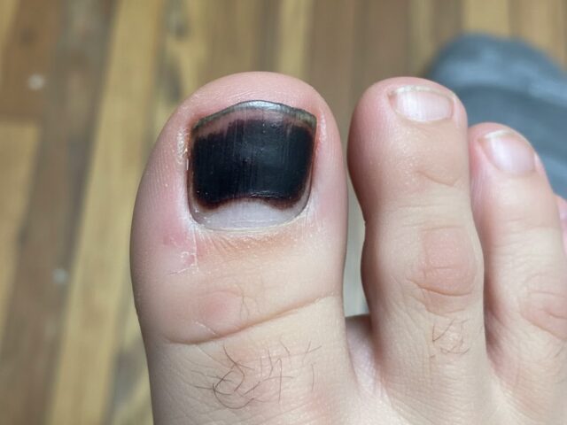 Have you dropped a heavy object on your toe or your nail has been directly impacted during a sports activity and you end up with a black toenail? The pain is immediate and intense. In some cases, the black toenail on the foot occurs after a painless but repetitive microtrauma, for example during running and physical activity with multiple changes of direction such as tennis or pickelball. The toe can hit the toe of the shoe if it is too small or too big.